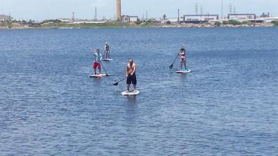 K6 Island Sports is renting paddle boards at On the Bayou Galveston/George's Texas Cuisine every Saturday from 11am - 7pm for $20 per hour. Discounts for multiple hours. This is a great setting whether you are new to paddle boarding or an experienced boarder. Avoid the stinky seaweed and come hang out - fun for the whole family! Also, George's has all of the Nfl and College games on every week, and the food is fantastic!